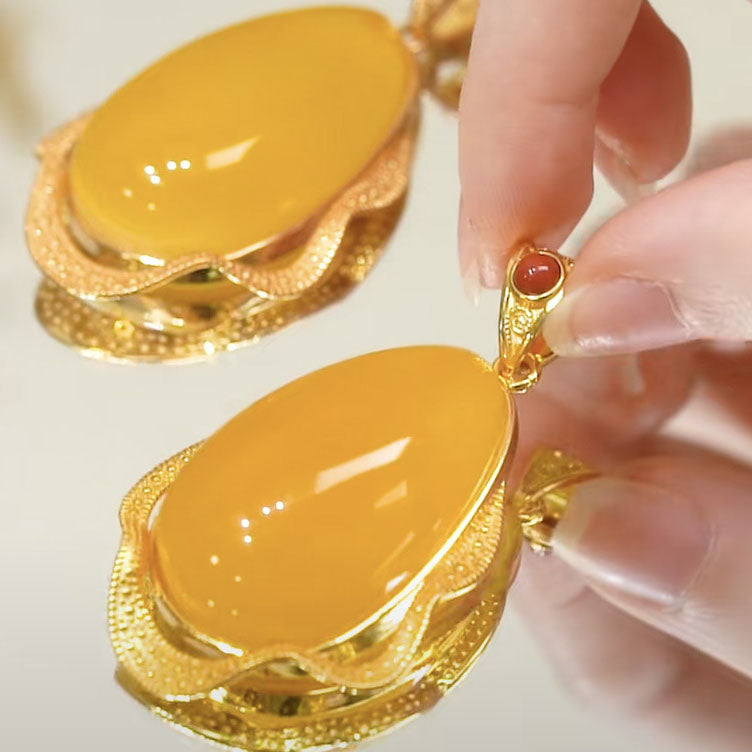 This retro styled agate stone pendant necklace is exquisitely designed with an eye-catching yellow Ice Agate stone. Crafted with a subtle yet elegant retro vibe, it's sure to elevate any look.